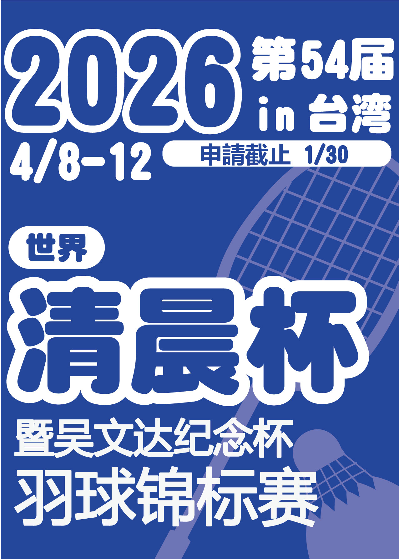 2026年 第54届 世界清晨杯暨吴文达纪念杯羽球锦标赛