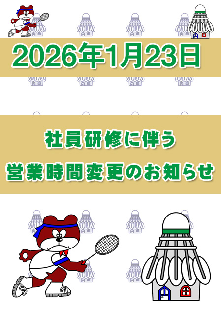 続きを読むいつもバドミントン専門店シャトルハウスをご愛顧いただきありがとうございます。 年末年始の営業日につきまして、下記の通りご案内いたします。 お客さまにはご不便をおかけいたしますが、何卒ご了承くださ...