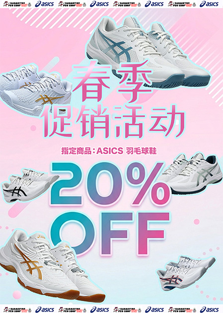 感谢您一直以来的支持与厚爱! 为表达我们的感谢,特别推出春季促销活动! ASICS 羽毛球鞋限时8折优惠! 超值入手机会,千万不要错过!