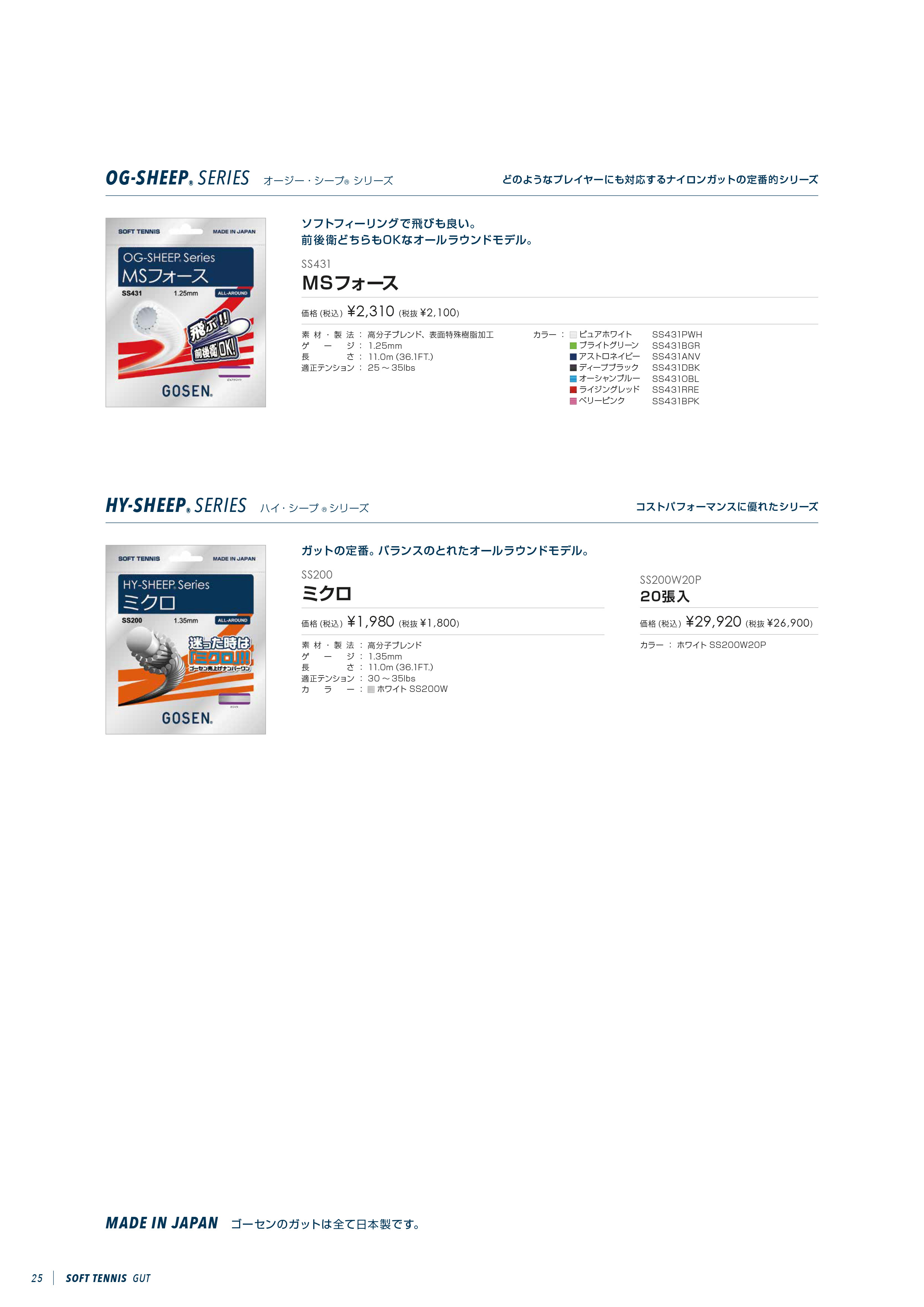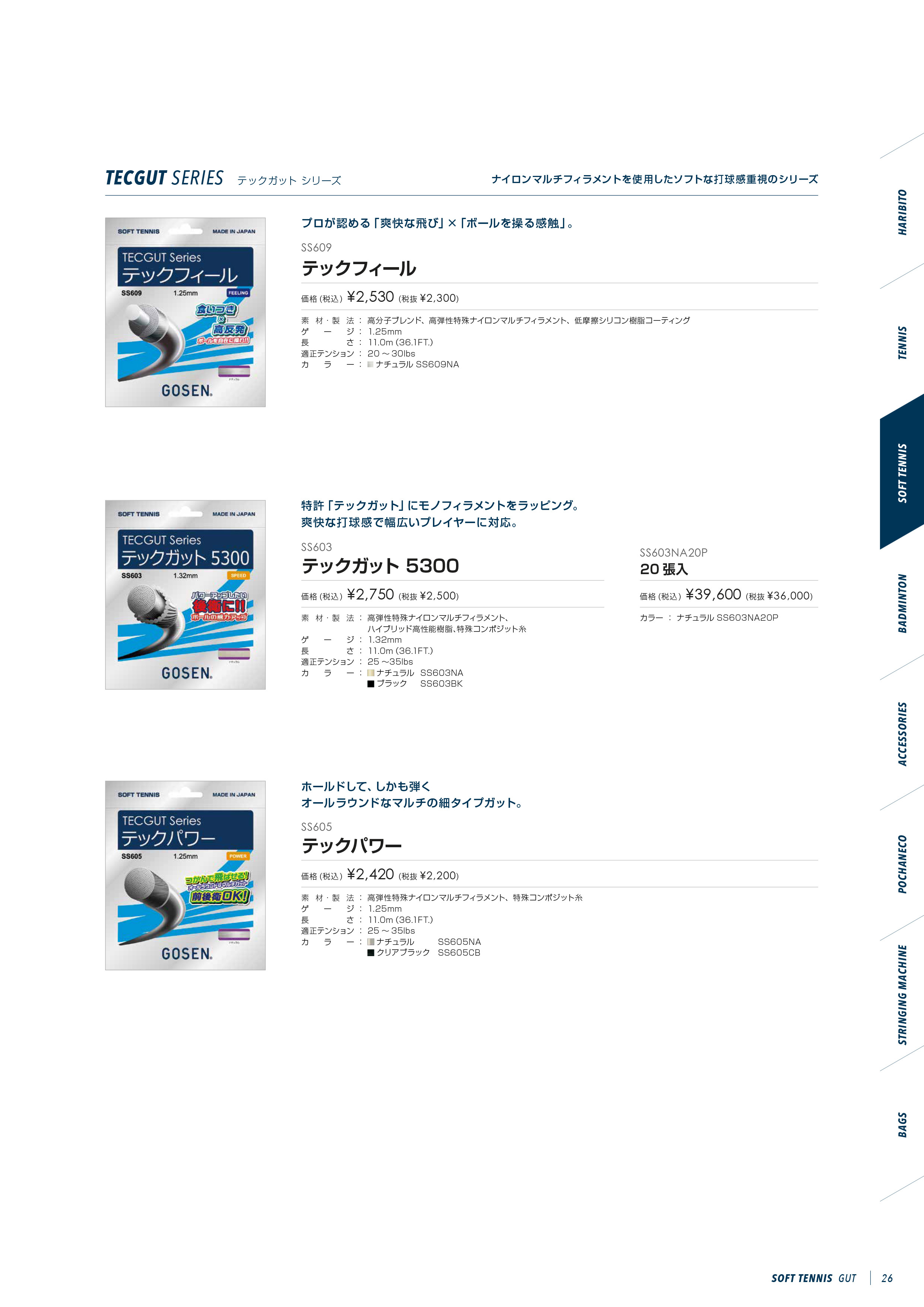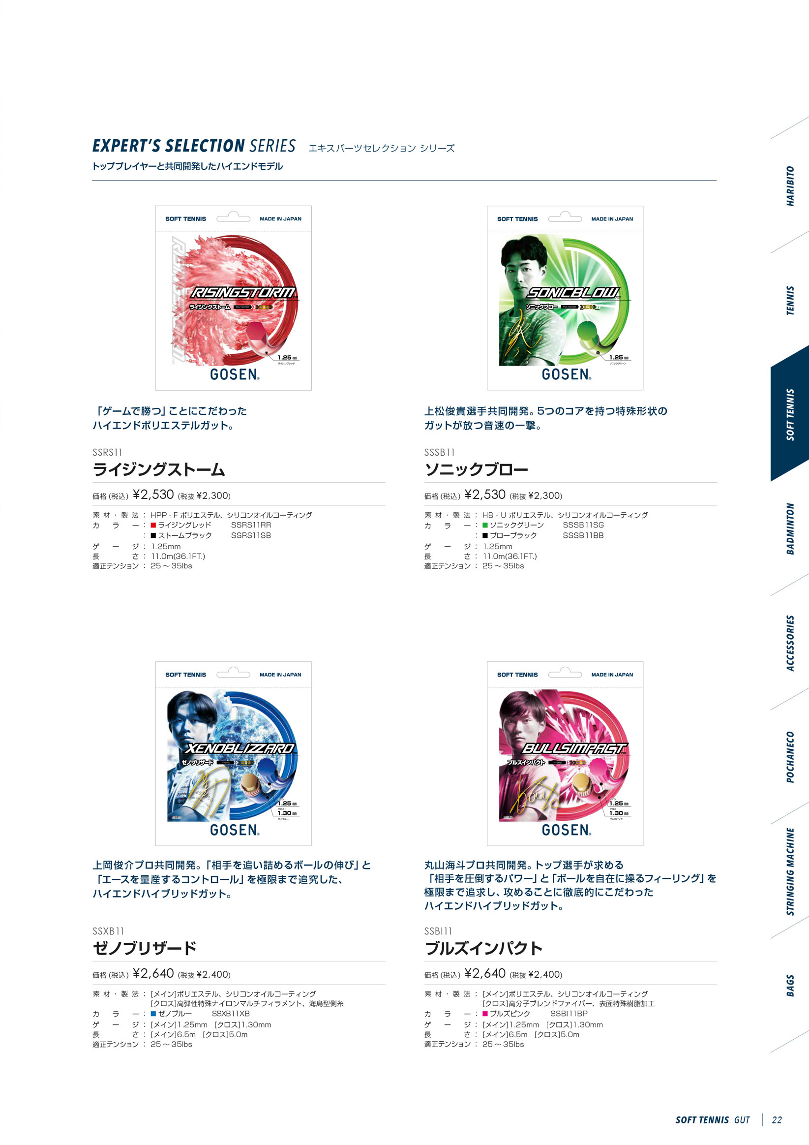 ゴーセン 2026 テニス ソフトテニス バドミントン カタログ 20ページ~39ページ