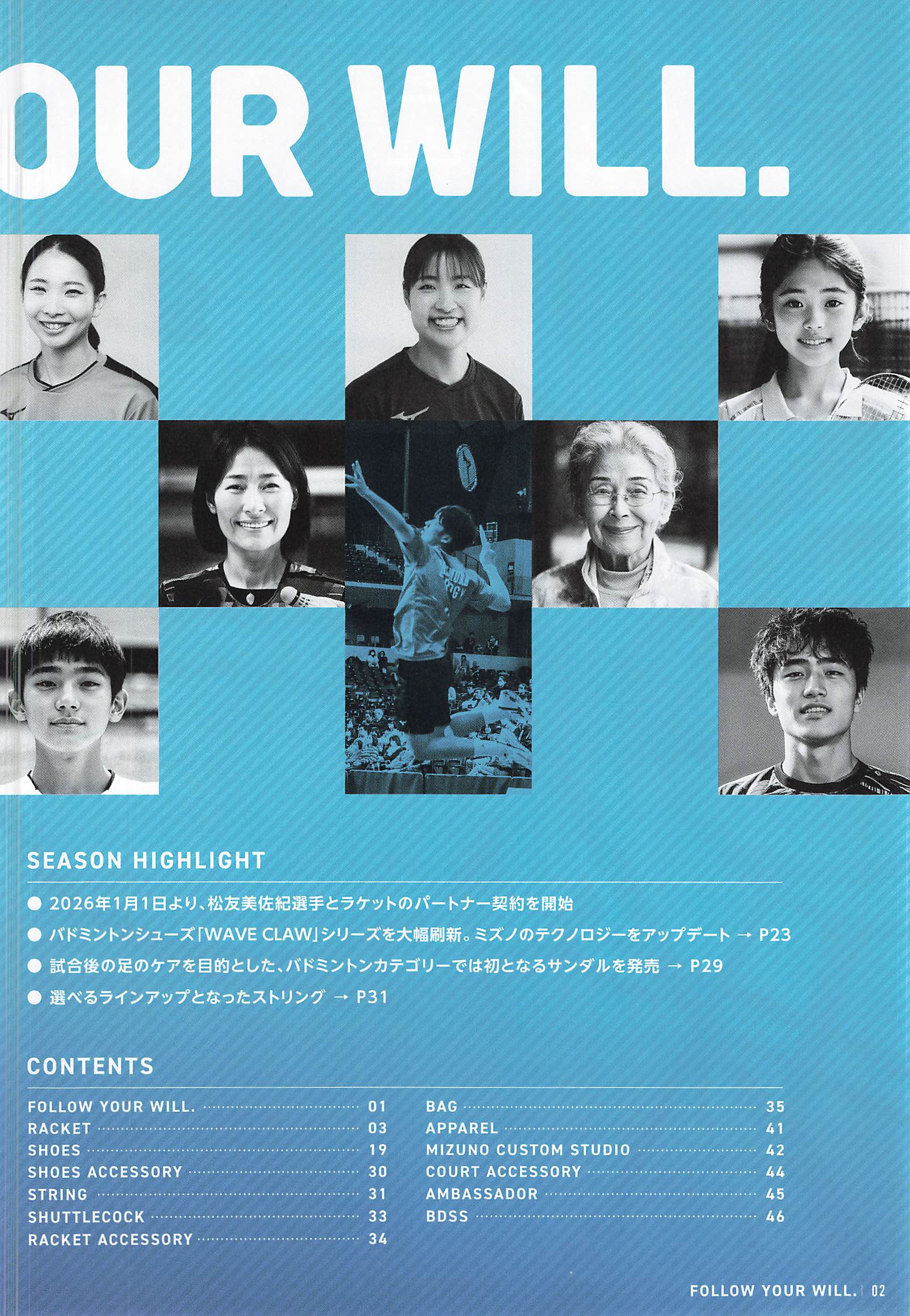 MIZUNO 2026 春夏 バドミントンカタログページ 表紙~23ページ